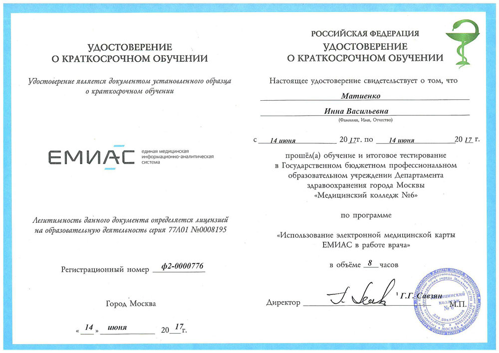Сертификаты Главная / О докторе / Сертификаты Сертификаты, дипломы, свидетельства и удостоверения доктора Матиенко И.В. О доктореО себе, опыт работы Образование Статьи, научные работы Сертификаты Контакты